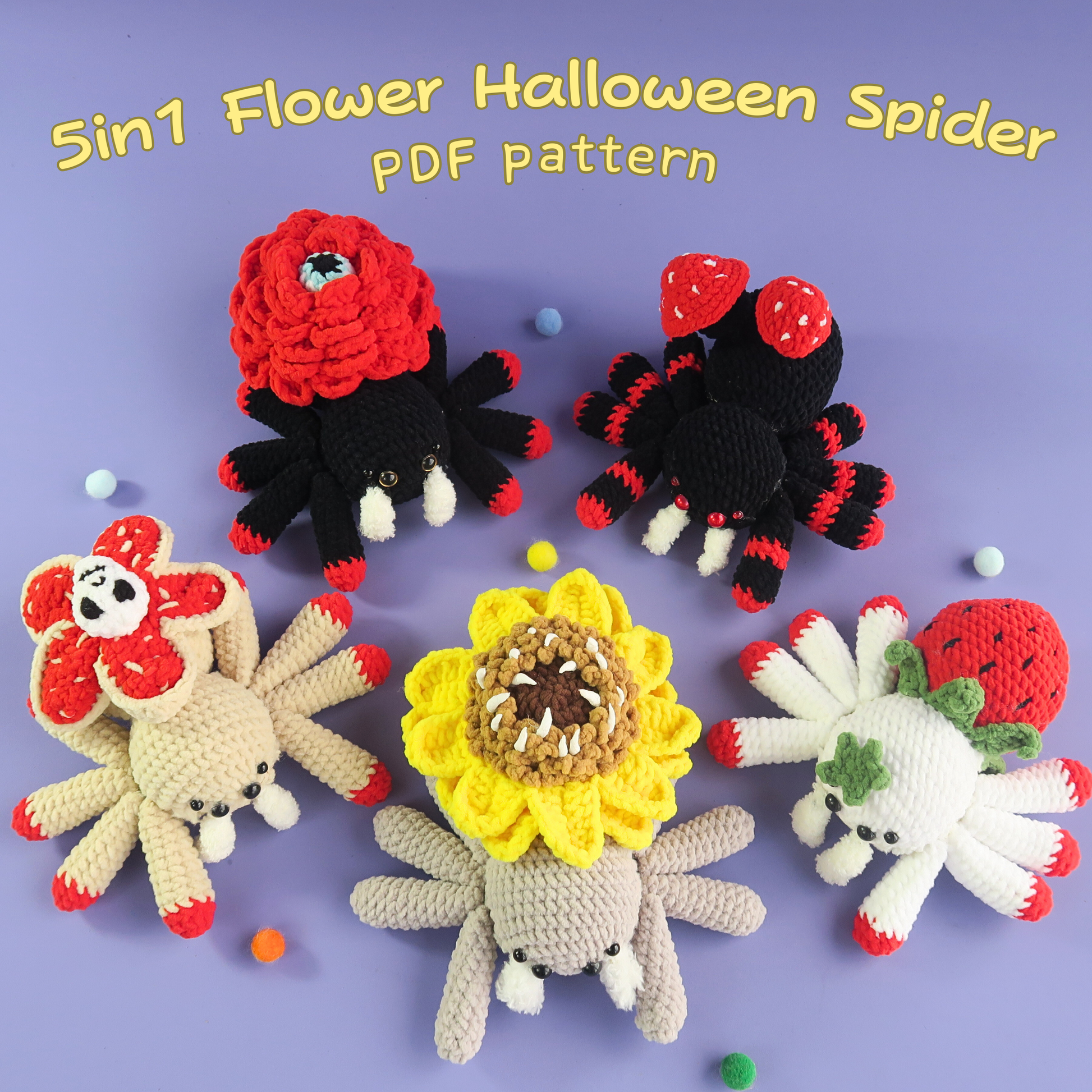 Spooky meets sweet in this one-of-a-kind 5-in-1 Creepy Halloween Flower Spider Crochet Pattern Bundle! Perfect for fans of Halloween amigurumi and creepy-cute crochet, this collection lets you create five unique spider designs—each with its own floral twist: